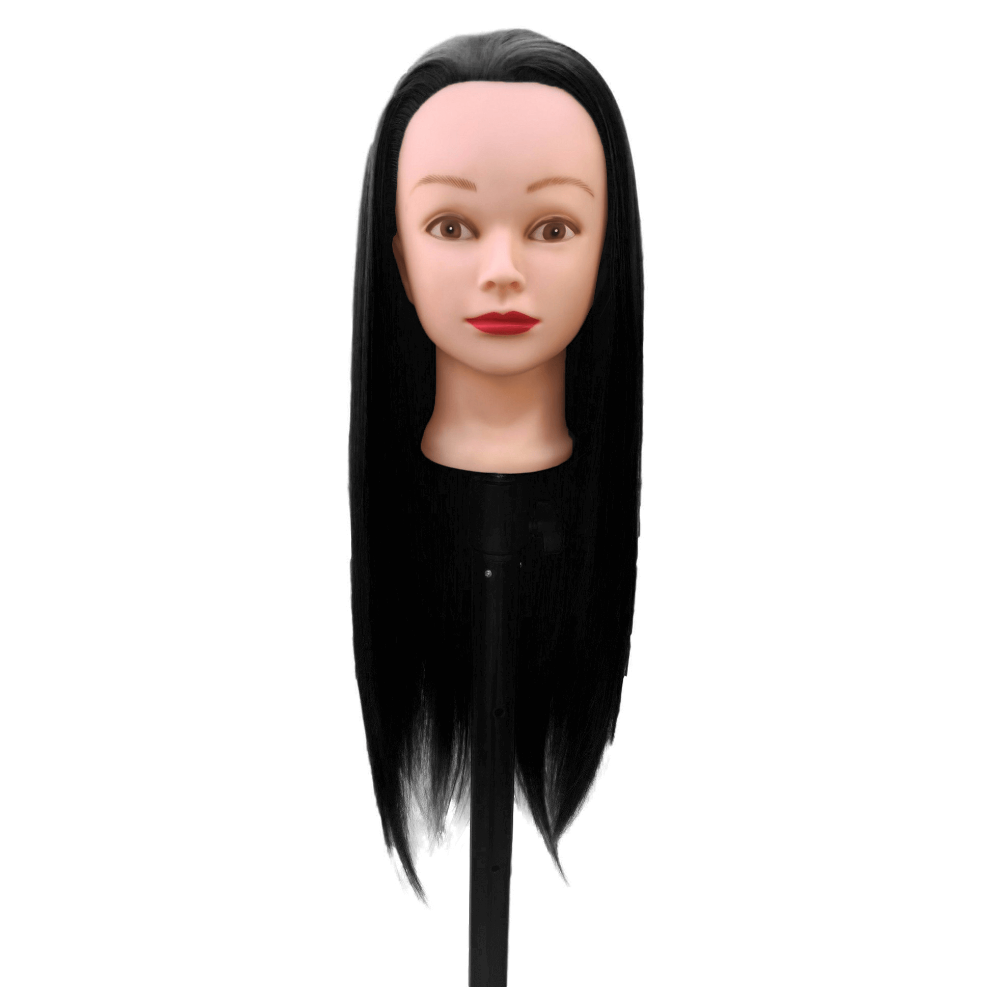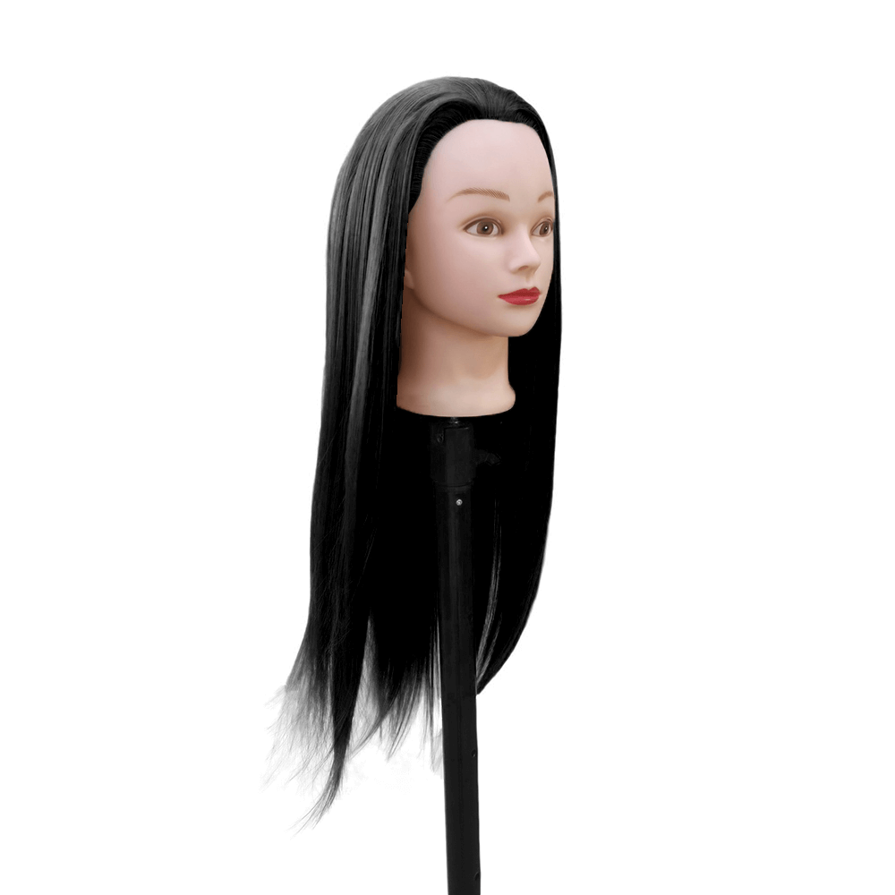 Манекен голова для причесок Braid с черными волосами 65 см с кронштейном