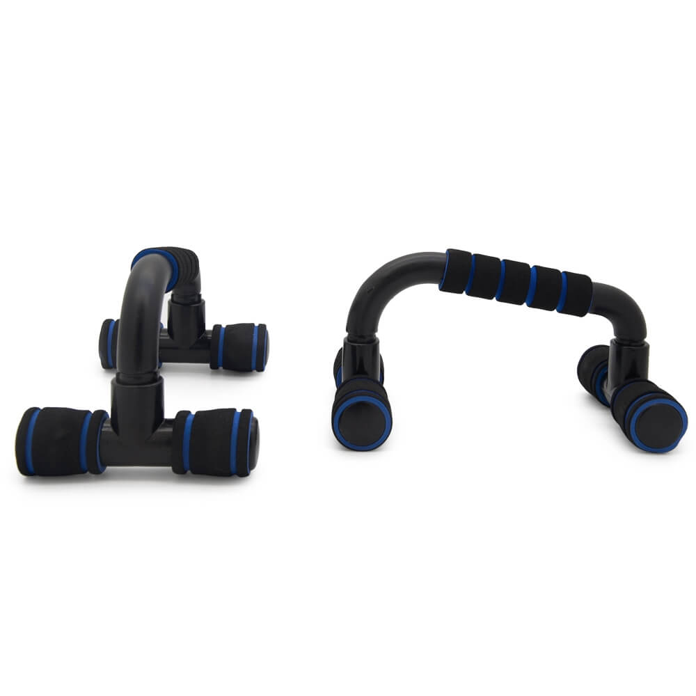 Упоры выполнены из высокопрочных полимерных материалов, окрашенных глянцевой черной эмалью. На упоры в месте соприкосновения с полом надеты противоскользящие пластиковые трубки. Рукоятки из плотного пенополиуретана. Упоры применяются во многих упражнениях с опорой рук в пол, например, отжиманием. Максимальная допустимая нагрузка на упоры не менее 100 кг.